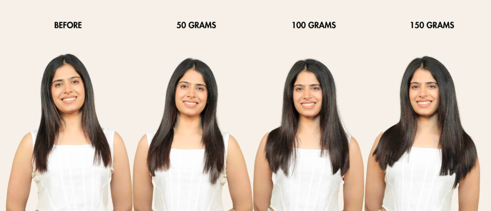 We craft our clip-in hair extensions using 100% human hair to ensure a natural look and seamless blend. Our volumizer extensions are designed with flexible, fabric-stitched bands, adding extra volume at the roots for a fuller, thicker appearance.